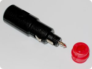 Möglich wird dies dadurch, dass der rote Kunststoffaufsatz abgenommen werden kann. Sobald er entfernt ist wird die Spitze zum Stecker nach DIN ISO 4165. Bleibt der Aufsatz auf dem Stecker passt selbiger in die Buchse eines Zigarettenanzünders.