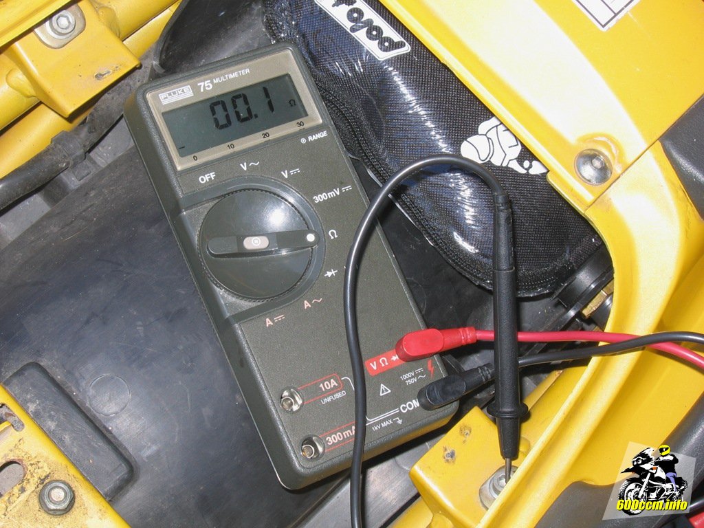 Kritiker werden nun sagen, dass eventuell der Widerstand zwischen Batteriepol und dem von mir gewählten Massepunkt so hoch sein kann, dass Probleme auftreten könnten. Daher eine kleine Messung: Das Messgerät zeigt lediglich 0,1 Ohm an. Das ist ein nun wirklich vernachlässigungswürdiger Wert. ![]()