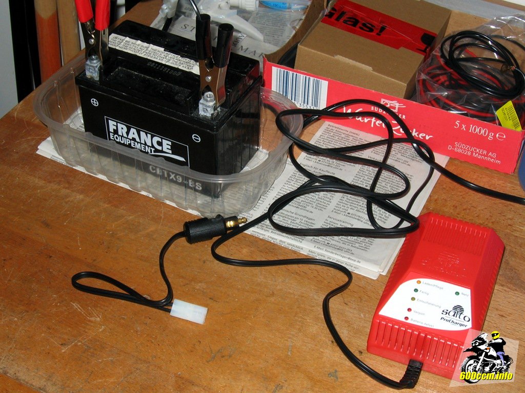 Abschließend noch was ich mit der Batterie meiner XJ 600 S im Winter mache. Während die Maschine in einer Garage trocken und auch frostfrei überwintert, steht die Batterie ausgebaut auf einer Werkbank. Alle drei bis vier Wochen wird das Ladegerät für eine Nacht angeschlossen, das sollte genügen.