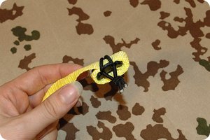 Ich hatte Haargummis ausprobiert, diese haben sich dann aber gelockert beziehungsweise das Gurtband ist einfach durchgerutscht. Der Vorteil beim Web Dominator ist, dass das Gurtband nicht nur aufgerollt wird, sondern mit dem Clip eine Einheit bildet. Nur so ist es mit der elastischen Schnur sicher fixiert.