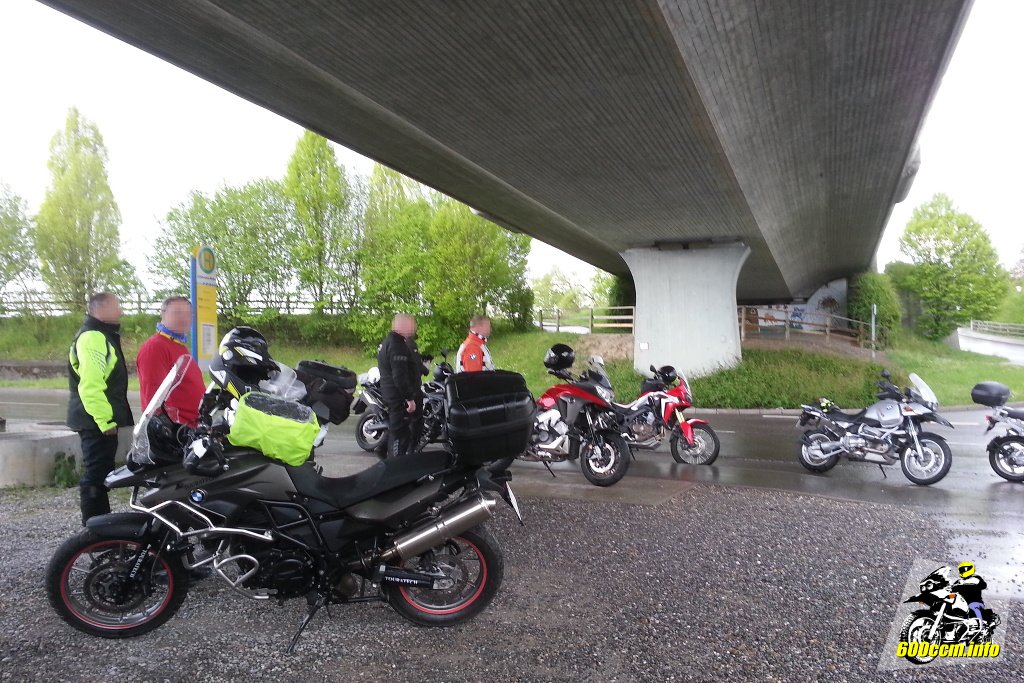 Ich war nicht allein. Vor mir hatten aus der Gegenrichtung kommend schon ein paar Motorradfahrer die Brücke gefunden und sich untergestellt. Schnell kam man ins Gespräch – auf Englisch. Ein alleinreisender Motorradfahrer aus Bulgarien erzählte mir auf einfachem Englisch das er bereits seit fast einer Stunde immer wieder durch Regenschauer fahren würde. Er sei vom »Oberjoch« gekommen. Da ich den kürzesten Weg nach Biberach im Navi eingegeben hatte um schnellstmöglich auf die B30 zu kommen scheint ihn sein Kartenmaterial ein wenig vom Kurs abgebracht zu haben. Auf Nachfrage erklärte er mir nicht am Bodensee entlang gefahren zu sein. Sein Tagesziel sei »im Schwarzwald« und noch etwa 150 km entfernt.