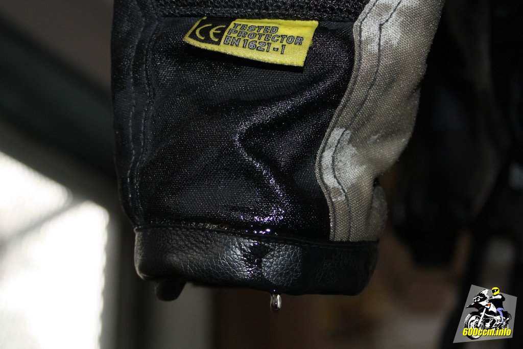 ), aber zwischen Obermaterial und Membran sammelt sich das Regenwasser. Wenn man die Fahrt fortsetzen kann und man in niederschlagsfreie Gebiete kommt, bläst der Fahrtwind das Wasser heraus.