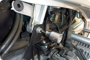 Der Tank der BMW R 1150 GS wird durch eine Schraube fixiert. Wird diese Schraube entfernt, kann der Tank nach oben geklappt werden.