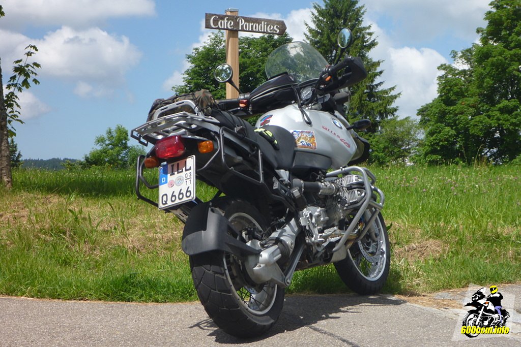Während er eine Zigarette anzündet und raucht holt er sich ein paar Informationen zu meiner GS ein: »Das ist doch die mit dem langen Sechsten, oder?«. Ja, den hat sie. »Daheim steht noch eine R, die hat auch den langen Sechsten – super wenn man damit auf der Autobahn lange Strecken fährt.«.