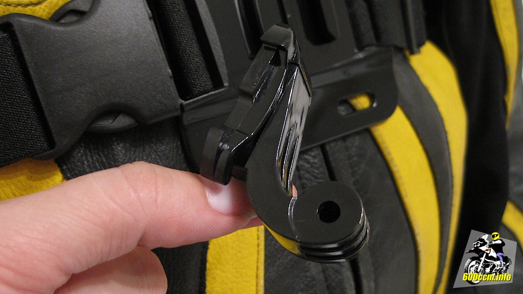 Die Kamera wird mit einer Halterung ausgeliefert welche theoretisch auch in die Halteplatte am Brustgurt passen würde. Dann würde sie aber nur den Tank filmen. Oder alternativ das markante Kinn des Brustgurtträgers. ![]()