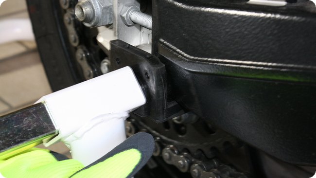 Ich stehe außerdem ein wenig auf dem Schlauch, was die Nutzung angeht. Wenn ich nur die Kette schmieren will, reicht dann einee Jalterung für Hinten? Oder geht die Kiste beim Anheben (mit nur einer Person) dann unter Umständen weg, will man also lieber vorne und Hinten einen Halter haben?