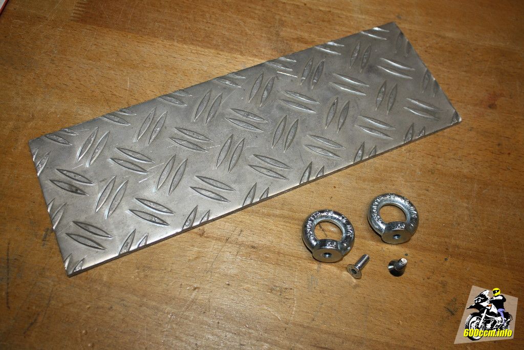 Wer sich beim Flaschner einen Rest Alublech holt, kann gerne betonen »ist egal wie es aussieht«. Manche zerkratzte Reststücke liegen schon in der Tonne für die Wiederverwertung. Da sowieso ein Seitenständer regelmäßig über das Blech kratzt ist aber egal wie es aussieht. Geschenkt wird man es trotzdem nicht bekommen, aber für 2–3 Euro bekommt man sicherlich ein solches Stück (vielleicht auch etwas größer).