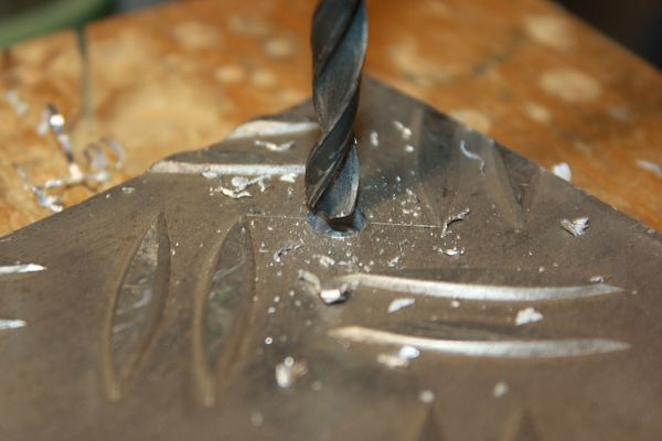 Anreißen, ankörnen, die Standbohrmaschine einschalten und schon sind die beiden Löcher ins Alublech gebohrt. Wer keine Standbohrmaschine hat, bekommt das bei 4–5 mm starkem Aluminium selbst mit einem einigermaßen kompetenten Akkuschrauber hin.
