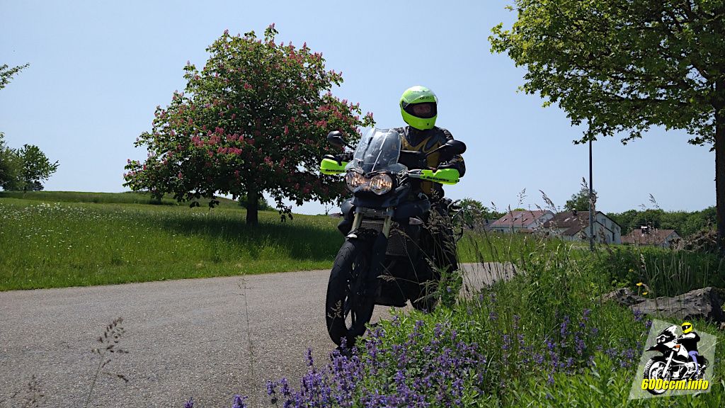 Die Wärme der Sonne wird bei der Tiger 800 durch die Abwärme auf primär das rechte Beine ergänzt. Deutlich spürbar bei langsamer Fahrt im Stadtverkehr – und beim Anhalten an Nachweispunkten. Also doch noch einen kleinen Nachteil der Tiger 800 gegenüber der GS gefunden? Nun ja, der Ölgekühlte Boxer machte es im Sommer auch warm, aber eher auf Höhe der Stiefel. 😎