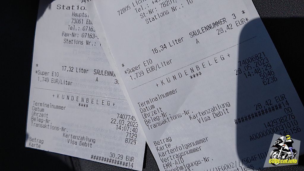 Der erste Tankstopp im März 2023 lag bei 1,659 Euro pro Liter E10. Die nächsten beiden waren rund 10 Cent teurer. So macht das Motorradfahren nicht viel Spaß. Allerdings betrifft das ja alle, also auch die Bürgerkäfigfahrer oder mich mit Diesel bei meinem Pickup. Denn auch Diesel ist kein Schnäppchen mehr (und ein Verbrauch von etwa 10 Litern auf 100 km beim Pickup macht noch weniger Spaß). 😕