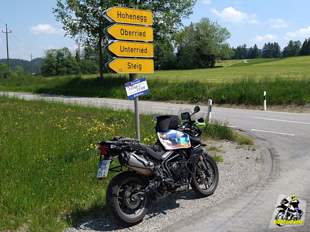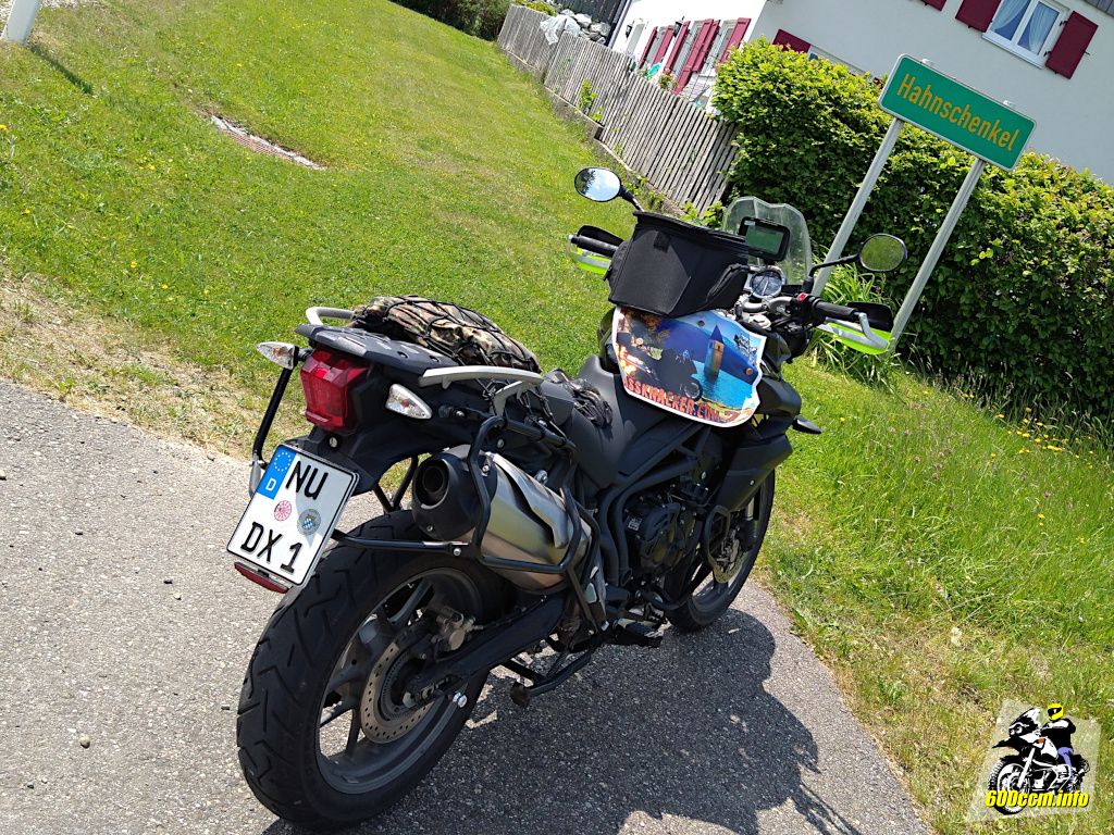 Dank der eingetragenen 92 dB(A) Standgeräusch bei 4640 U/min darf die Tiger auch in den »Sperrgebieten« in Österreich[3] unterwegs sein. Dort war ich heute aber nicht, also schluss mit dem Exkurs zur Tiger 800 und wieso ich sie als würdige Nachfolgerin meiner GS sehe und weiter mit der Tour im Mai.