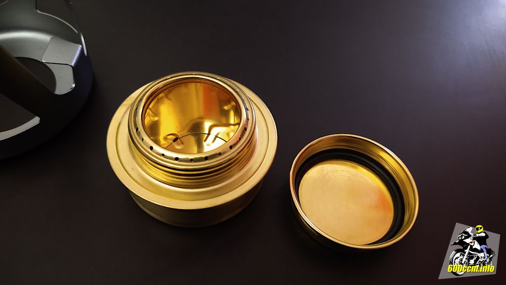 Natürlich ist der Brenner mit einem abschraubbaren Deckel versehen. Sollte nach dem Einsatz noch etwas Spiritus im Brenner sein, muss dieser nicht zwingend zurück in die Flasche gefüllt werden. Einfach den Deckel aufsetzen und verschrauben. Die dicke Dichtung innen im Deckel sorgt dafür, das der Spiritus im Brenner bleibt.