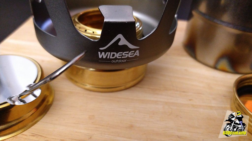 Der unter dem Markennamen Widesea verkaufte Brenner sieht auf den ersten Blick dem Original sehr ähnlich. Sowohl die charakteristische Form und simple Funktionsweise des Trangia Brenners werden übernommen. Auch das Material passt: Es handelt sich mutmaßlich um Messing.