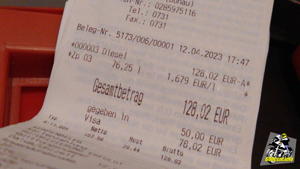 1,679 Euro hielt ich damals vermutlich nicht gerade für ein Schnäppchen. Die heutigen bis zu 2,129 Euro, welche mir auf meiner Tour begegnet sind, machen den Liter Diesel auch nicht attraktiver. 🙄