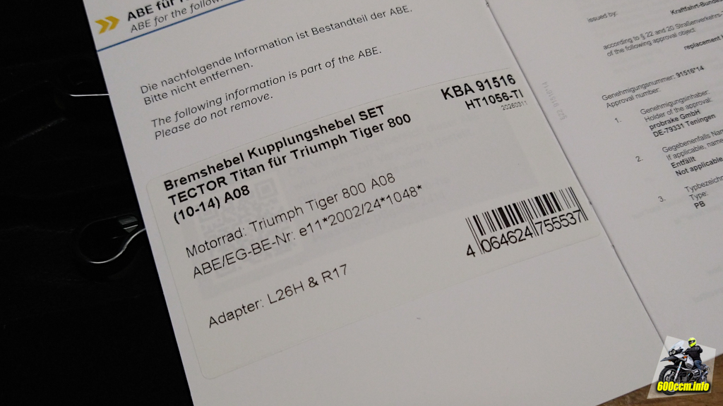 Die ABE für die Hebel vom Modell TECTOR liegt natürlich auch mit bei, sie ist als Heftchen ausgeführt und kann so mitgeführt werden.