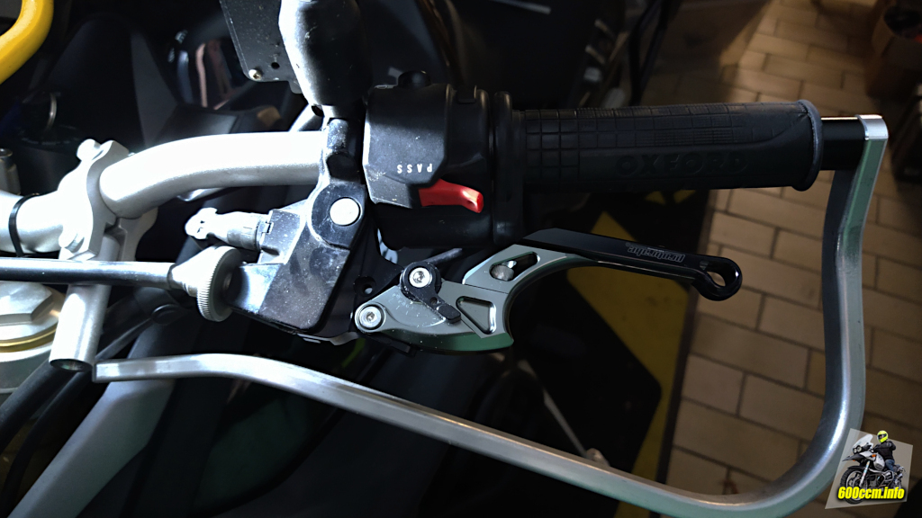 Wer wie ich mit robusten Handschützern (Barkbusters) fährt, hat das Problem des notwendigen Wegklappens vermutlich nicht. Dafür besteht das Problem, dass man die schönen (welche Farbe auch immer) Hebel gar nicht sieht. 🙄