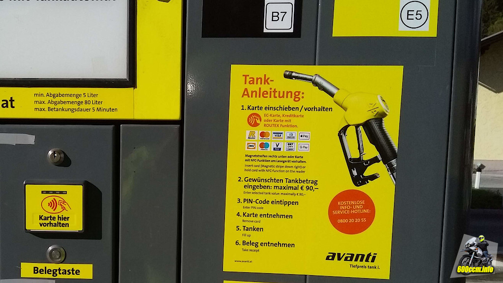Hier kann man aber auch ganz einfach diesen möglichen Fallstrick umgehen. Einfach Bargeld mitnehmen. Früher hatte ich immer 40,00 Euro dabei, aktuell reicht das leider nicht mal mehr für eineinhalb Tankfüllungen der Tiger 800. Also eher 80,00 Euro mitnehmen und immer eine Barzahlung vornehmen, wenn es möglich ist.