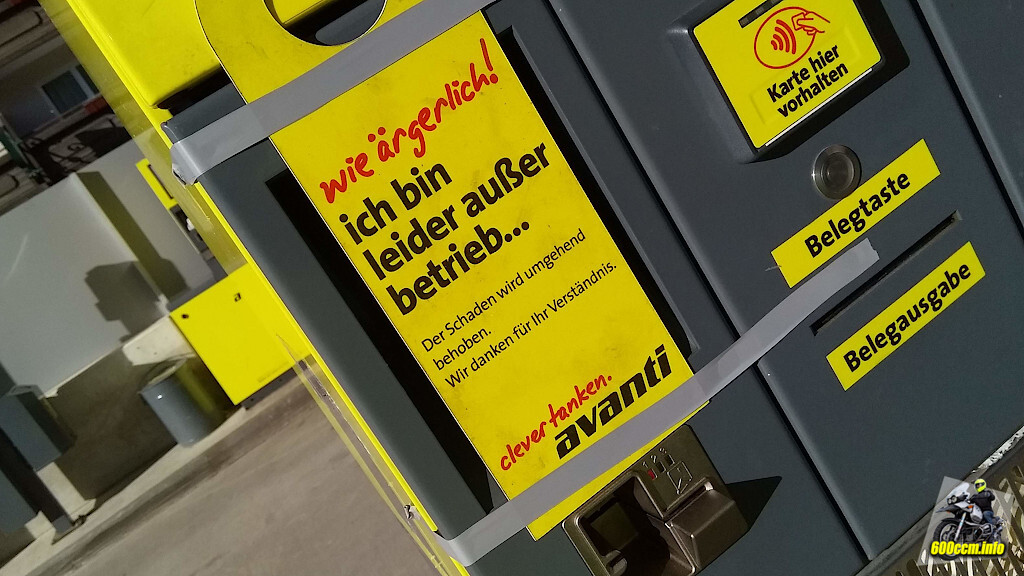 Daher lieber einmal mehr Tanken und die Restreichweite auf über 100 km halten bevor man irgendwo im Nirgendwo steht und die einzige Automatentankstelle im Umkreis von 20 km Fahrstrecke einen außerplanmäßigen Urlaube eingelegt hat. 🙄